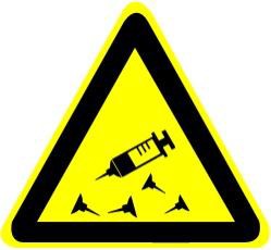 | 2-17 | ![]() | 当心锐器 Warning harp bjects | J | 易造成皮肤刺伤、切割伤的物品或作业场所,如鸡胚接种、菌(毒)种冻干保存过程 | ||