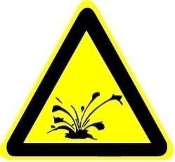 | 2-4 | ![]() | 当心爆炸 Warning explosion | H,J | 易发生爆炸危险的场所,如实验室储存易燃易爆物质处、易燃易爆物质使用处或受压容器存放地 | ||