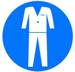 | 3-2 | ![]() | 必须穿工作服 Must wear work clothes | J | 按规定必须穿工作服(实验室基本工作服装)的场所,如实验室风险较低,不需要穿防护服的一般工作区域 | ||
