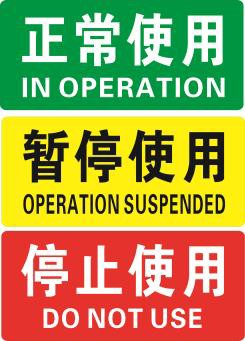 | 5-2 | ![]() | 设备状态 Equipment status | J | 处于正常使用、暂停使用、停止使用状态的仪器和设施设备上或其附近 | ||
